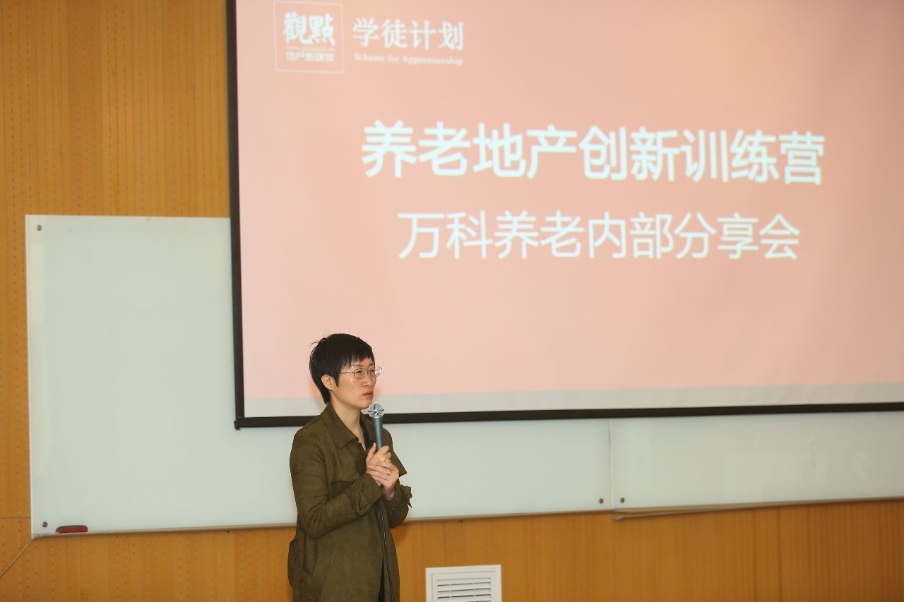 站在臺上的導(dǎo)師是萬怡醫(yī)養(yǎng)總經(jīng)理于永玲,她在十年前加入萬科集團(tuán),2014年主持開業(yè)了萬科集團(tuán)首個養(yǎng)老全托中心項目,并自去年初擔(dān)任北京萬科養(yǎng)老業(yè)務(wù)總經(jīng)理。