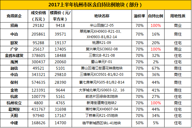 此外,葛洲壩以43.18億元獲得的西湖區(qū)蔣村地塊,需自持比例為44%,保利、中冶以總價57.5億、34.3億競得的兩宗商住用地自持比例均為36%。