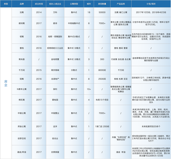 值得注意的是,在行業(yè)整合大潮之下,國企以及互聯(lián)網(wǎng)企業(yè)或?qū)⒊蔀樽》孔赓U市場新興力量。上海近期出讓的2宗“只租不售”用地均由區(qū)屬國企以超低價獲得,深圳新組建的國有租賃企業(yè)人才安居集團開始運營,未來將籌建40萬套人才房,70%為公租房,可見政策支持“國企先行”導(dǎo)向。