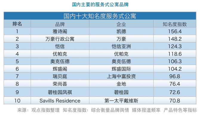不過,從目前國內(nèi)的品牌來看,服務(wù)式公寓領(lǐng)域仍然為外資的、國際連鎖品牌鎖定絕大部分的市場,國內(nèi)的服務(wù)式公寓品牌主要有: