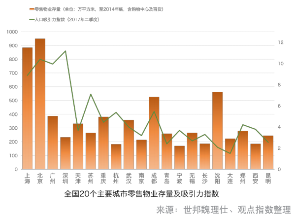 不過,在零售物業(yè)市場,供應(yīng)量加大往往意味著消費人群的分流和競爭加劇,部分二三線城市也因此空置率偏高,市場風險增大。