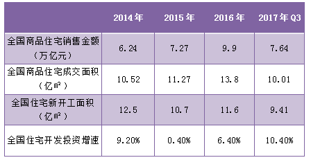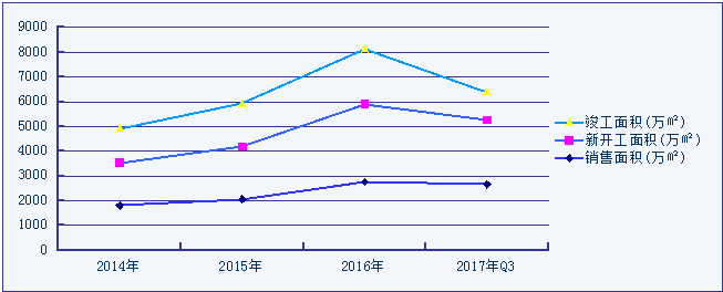 2015-2017年前三季度,全國住宅開發(fā)投資增速、住宅新開工面積兩項數(shù)據(jù)連續(xù)錄得回升,反映出開發(fā)商對大部分地區(qū)的住宅市場較為樂觀。不過,自2015年以來,全國已連續(xù)第三年出現(xiàn)住宅新開工面積低于同期商品住宅銷售面積,去庫存仍面臨較大挑戰(zhàn)。