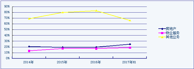 從經(jīng)營利潤率看,萬科房地產(chǎn)結(jié)算利潤率一直在20%上下,2017年上半年為24.76%;物業(yè)管理則長期低于20%,上半年僅18.74%,遠(yuǎn)低于同期彩生活45%、中海物業(yè)30%的毛利水平。