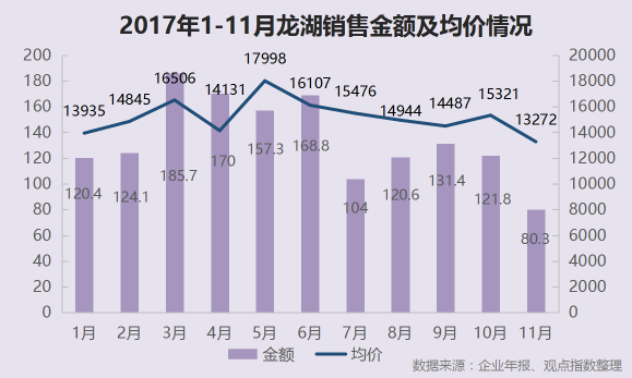2017年1-12月,據(jù)觀點指數(shù)統(tǒng)計龍湖累計實現(xiàn)銷售業(yè)績?nèi)嗣駧?560.8億元,距離龍湖1600億元的年度銷售目標(biāo)僅一步之遙。