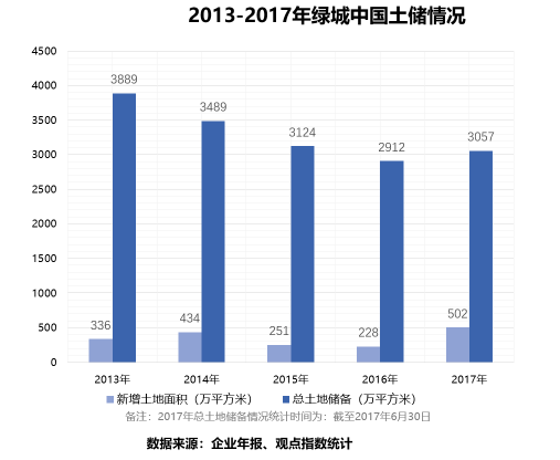 只是,當(dāng)行業(yè)集中度越來越高,以及大股東中交對(duì)規(guī)模的要求,綠城也不得不面對(duì)“規(guī)模即地位”的壓力。因此,2017年成為綠城近五年里罕見的土儲(chǔ)大年。