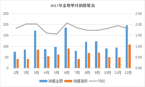 邁過千億之后的金地,在2017年并未放緩步伐。從單月銷售來看,由于3月及6月推售的高端項目較多,在銷售金額與均價上,均有明顯好轉(zhuǎn)。
