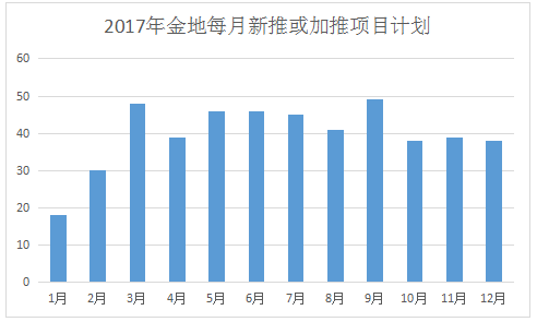 銷售業(yè)績的飄紅與積極推盤緊密相關(guān),據(jù)觀點指數(shù)了解,除1月份新推或加推項目數(shù)量在20個以下外,其余的月份,金地推盤均達30個以上,5-9月期間,更是達到了每月40多個項目同時推售的情況。
