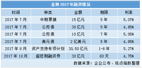 進入下半年,金地在資本市場的融資節(jié)奏開始加速,僅七月份就先后完成發(fā)行公司債券40億元,中期票據(jù)15億元,發(fā)行美元債2億美元,并在9月份發(fā)行資產(chǎn)支持專項計劃30.5億元,10月份發(fā)行超短融資券30億元。