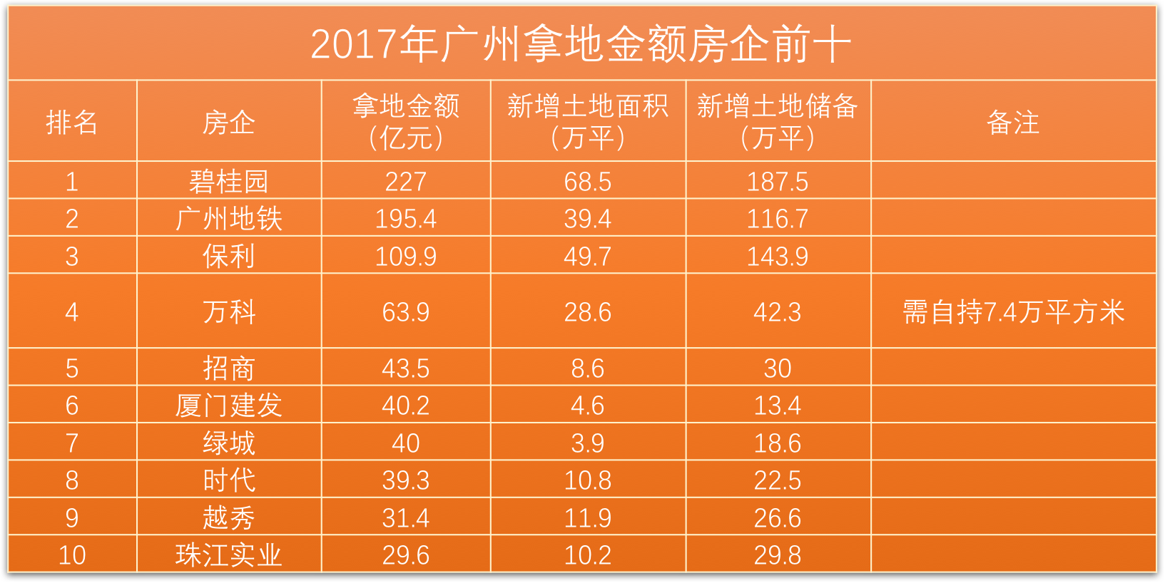 因?yàn)檎畬?duì)商品房預(yù)售價(jià)也提出了明確要求,廣州樓市在調(diào)控中的2017年呈現(xiàn)出兩極分化現(xiàn)象,既有創(chuàng)新高的銷售成績,也有明顯下滑,百億房企縮減至四家,第一名與第二名的差距就已在100億以上。