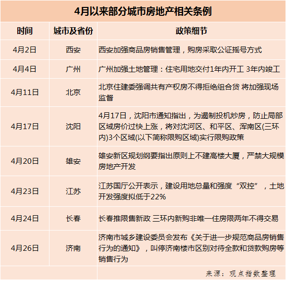 在去年一波限購政策的基礎(chǔ)上,4月各地房地產(chǎn)限購細(xì)則持續(xù)出臺(tái),指向各種投機(jī)性開發(fā)及需求,這也意味著未來的房地產(chǎn)市場更加考驗(yàn)的是房企的自身功底。