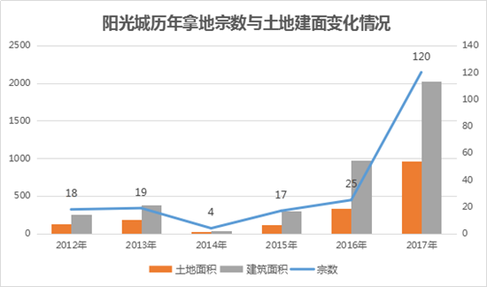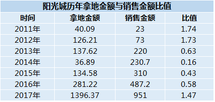 截止到2017年底,陽光城累計(jì)總土儲(chǔ)達(dá)3796萬平方米,儲(chǔ)備貨值4911億元。