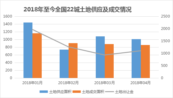 不過從土地供給端來看,22城土地供應(yīng)有所回升,且“供大于求”。除2月外,2018年1月、3月以及4月的土地供應(yīng)面積均超過成交面積。
