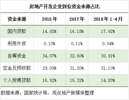 國(guó)家統(tǒng)計(jì)局?jǐn)?shù)據(jù)顯示,2018年1-4月,房地產(chǎn)開(kāi)發(fā)企業(yè)到位資金4.82萬(wàn)億元,同比增長(zhǎng)2.1%,增速較一季度回落1個(gè)點(diǎn)。按來(lái)源分,國(guó)內(nèi)貸款下降1.6%,自籌資金增長(zhǎng)4.8%。