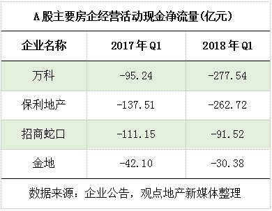 值得一提的是,從已有的房企一季度財(cái)報(bào)看,“招保萬(wàn)金”四大房企大部分表現(xiàn)出經(jīng)營(yíng)活動(dòng)現(xiàn)金凈流量、經(jīng)營(yíng)活動(dòng)現(xiàn)金凈流量為負(fù),而籌資活動(dòng)凈流量為正,說(shuō)明主流房企在增加對(duì)工程、地價(jià)等房地產(chǎn)項(xiàng)目投入,同時(shí)仍將融資至于企業(yè)戰(zhàn)略的重要位置。