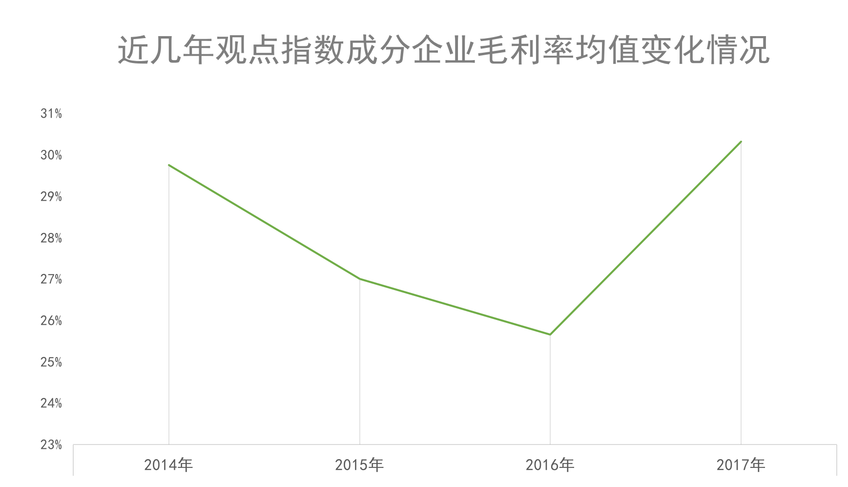 房地產(chǎn)金融化模式深化的一個(gè)推手,就是房企的毛利潤(rùn)已經(jīng)逐漸式微、出現(xiàn)下降。以觀點(diǎn)指數(shù)監(jiān)測(cè)的37家成分企業(yè)數(shù)據(jù)來(lái)看,2014年平均毛利率為29.74%,2016年則下降至25.65%,2017年毛利率則出現(xiàn)大幅上漲,至30.31%。