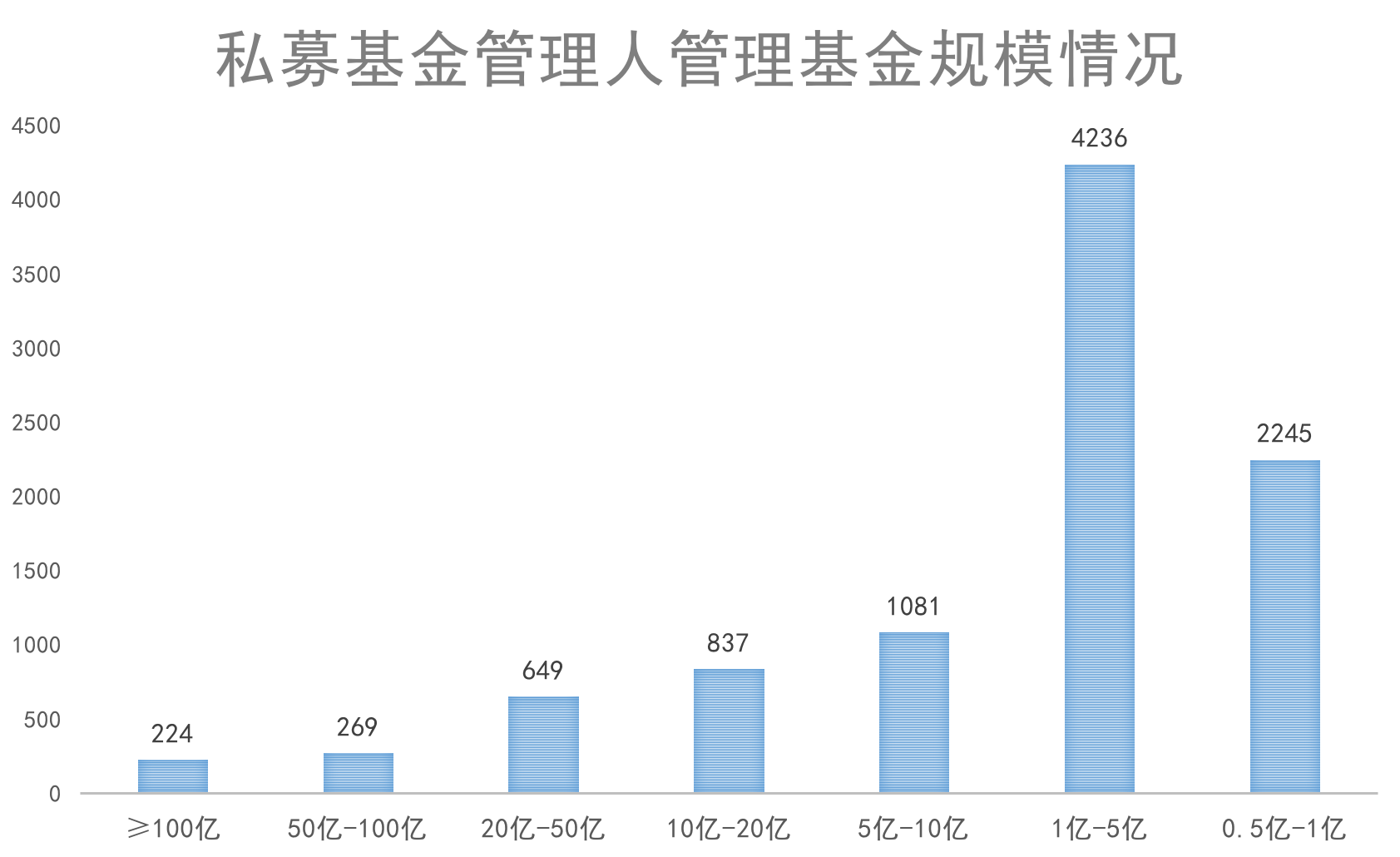 截至2018年6月底,協(xié)會(huì)已登記私募基金管理人管理基金規(guī)模在100億元及以上的有224家,所占比重最小。管理基金規(guī)模第二高的處于0.5億元-1億元之間,達(dá)到2245家。管理規(guī)模在1億-5億元的私募基金管理人數(shù)最多,高達(dá)4236家。