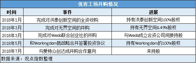顯然,優(yōu)客工場從運(yùn)營性質(zhì)更偏向于資本驅(qū)動,并且以并購作為擴(kuò)張的主要手段之一,但一些市場人士對優(yōu)客工場的并購操作結(jié)果產(chǎn)生了質(zhì)疑。