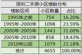 深圳二手房小區(qū)樓齡分布