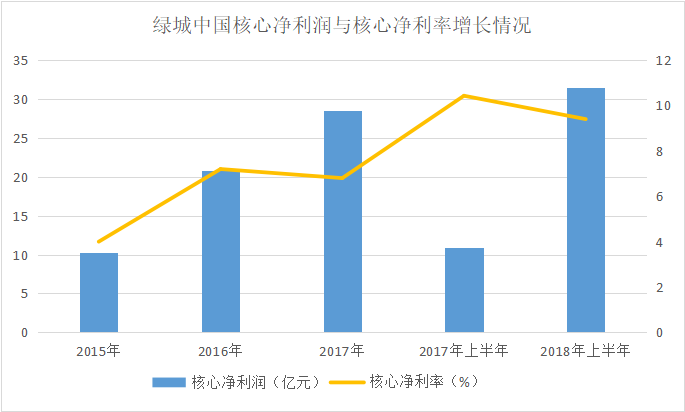 據(jù)了解,綠城中國2015、2016、2017年的核心凈利潤分別實現(xiàn)10.33億元、20.86億元以及28.54億元。而根據(jù)其2018年中報披露的數(shù)據(jù),綠城中國今年上半年的核心凈利潤達到31.5億元。