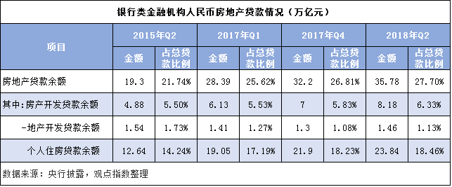 央行披露數(shù)據(jù)顯示,近三年來銀行類金融機(jī)構(gòu)人民幣貸款總額持續(xù)增長,其中房地產(chǎn)貸款作為主要貸款領(lǐng)域,至2018年6月底占比升至27.70%,為近年新高。