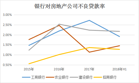 銀行業(yè)的年報(bào)釋放的另一種情況則是,房地產(chǎn)類貸款盡管是安全邊際高的業(yè)務(wù),但近年來不管是國有銀行、股份制銀行還是地方性銀行,不良貸款率總體呈現(xiàn)出反彈跡象。在上述五家樣本銀行中,農(nóng)業(yè)銀行作為對房地產(chǎn)公司類貸款最多的一家,2018年半年不良貸款率為1.45%,較去年底上升0.32個(gè)百分點(diǎn)。
