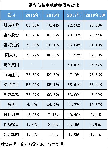 由于信用借款的難度大,而股權(quán)、土地、房地產(chǎn)等資產(chǎn)可以快速抵押或者變現(xiàn),價(jià)值明晰易于計(jì)算,因此成為不少A股房企的重要銀行融資渠道。