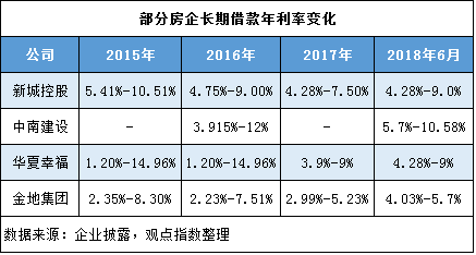 借款利率方面,2016年以來,已披露的部分房企自銀行間市場獲得的資金重新呈上升趨勢。以金地為例,2018年上半年長期借款利率區(qū)間為4.03%-5.7%,去年底僅為2.99%-5.23%,反映銀行收縮信用之下,房企的償債成本相應(yīng)提高。