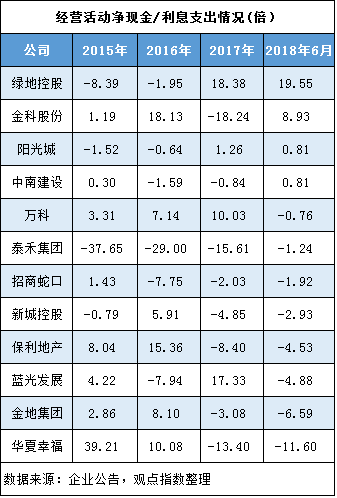 上述企業(yè)中,僅有萬科于2015-2017年經(jīng)營活動(dòng)凈現(xiàn)金/利息支出為正,且分別為3.31倍、7.14倍和10.03倍,呈不斷上升態(tài)勢。