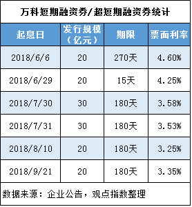 據(jù)不完全統(tǒng)計(jì),僅8月至9月下旬,包括金科、金地、萬科、富力、華僑城、華夏幸福、新城控股、金融街等房企先后發(fā)行短期融資券/超短期融資券,期限集中在180-365天,利率最高為6.9%(金科),最低為3.25%(萬科)。