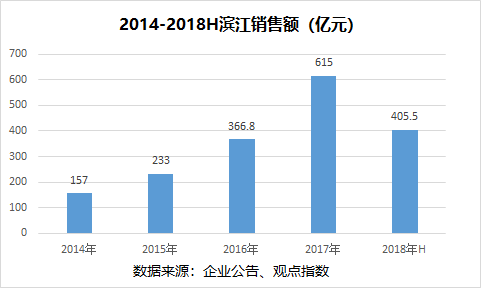 半年報(bào)顯示,上半年,濱江完成銷售額405.5億,并實(shí)現(xiàn)營(yíng)收95.54億,同比分別上升80.5%、92.33%。另?yè)?jù)觀點(diǎn)指數(shù)發(fā)布的數(shù)據(jù),年前10個(gè)月,濱江剛剛跨過700億。