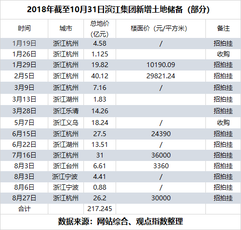 相比之下,2017年全年,濱江一共新增了220.45萬平方米土地儲(chǔ)備,擴(kuò)張腳步明顯加快。