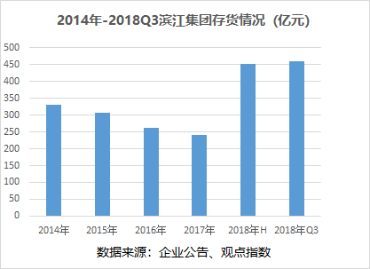 半年報(bào)及顯示,期內(nèi),濱江的存貨由2017年底的241.48億元,增加了87%至451.66億,截至第三季度,這一數(shù)字又繼續(xù)上升到458.25億元。