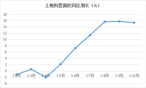 數(shù)據(jù)顯示,全國房地產(chǎn)開發(fā)企業(yè)土地購置面積增速在1-8月、1-9月以及1-10月均超過了15%,這結束了土地購置面積在今年上半年個位數(shù)增長,甚至負增長的局面。