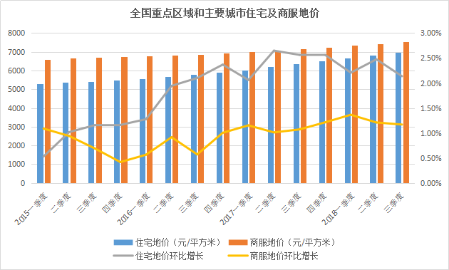 數(shù)據(jù)顯示,全國重點區(qū)域和主要城市住宅地價增幅自今年二季度開始呈快速下滑趨勢,而商服地價格增速進入2018年一季度以來就已經(jīng)放緩,這都進一步成為了企業(yè)重新入市拿地的誘因。