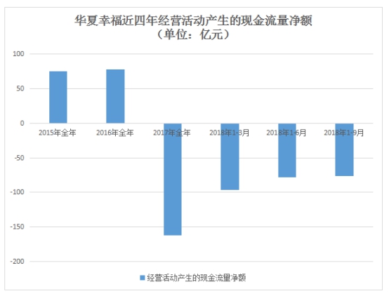 翻看華夏幸福今年以來的財務(wù)數(shù)據(jù),2018年第一季度,華夏幸福經(jīng)營活動產(chǎn)生的現(xiàn)金流量凈額仍為負(fù)值,即-96.03億元,第二季度末則為-78.18億元,第三季度末則為-76.60億元。