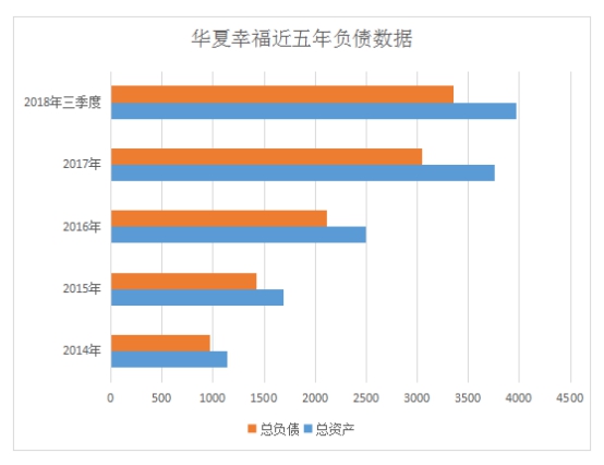 此外,從負(fù)債方面看,2014年全年,華夏幸福錄得總負(fù)債965.68億元,2015年為1429.93億元,與2014年相比增長了464.25億元,負(fù)債率為84.80%;隨后,2016年,總負(fù)債為2118.72億元;2017年,華夏幸福的總負(fù)債大增929.6億元至3048.32億元。