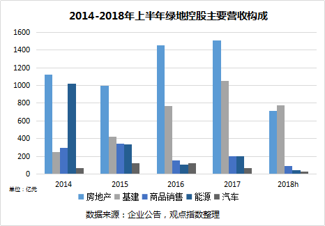 2018年三季報顯示,期內,綠地房地產營收和基建業(yè)務營收幾乎持平,分別達到1041億元和1009億元,此前的半年報中,基建的營收甚至一度超過地產,放在任何一家房企,這大概都是無法想象的。