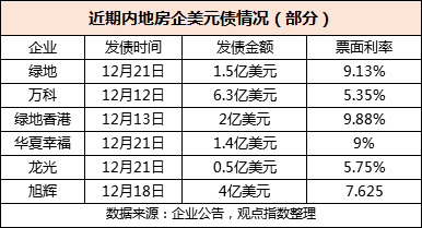 12月21日,綠地發(fā)行1.5億美元定息債券,票面利率高達9.125%。相比之下,萬科之前發(fā)行的6.3億美元中期票據(jù),利率僅為5.35%。就算與民營企業(yè)相比,綠地的這筆美元債也并不便宜。