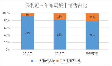 但不可忽視的是,近幾年來保利在三四線城市銷售的占比不斷上升。