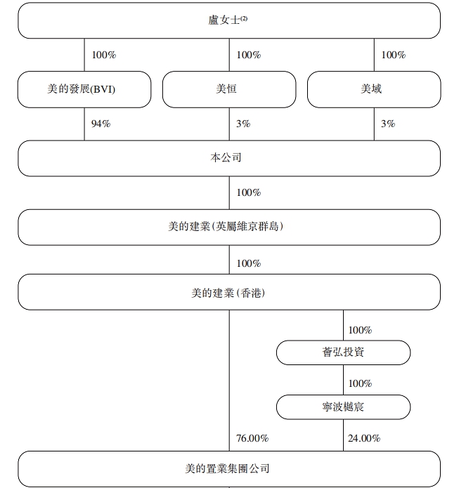 事實上,在上市前的2018年5月28日,樾宸投資還將所持美的置業(yè)集團(tuán)16%權(quán)益,以33.6億元的價格轉(zhuǎn)讓給美的建業(yè)(香港)。轉(zhuǎn)讓后,美的置業(yè)集團(tuán)由美的建業(yè)(香港)及樾宸投資分別持有76%及24%。