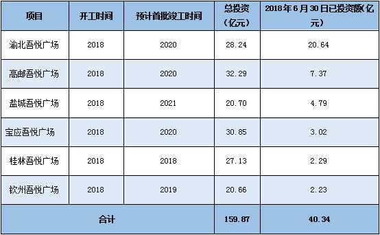 業(yè)績報告顯示,截至2018年上半年,新城在吾悅廣場上共投資了40.34億元。按2020年開業(yè)百座吾悅廣場的目標來算,新城還有將近50座吾悅廣場在排隊等待建設開發(fā)中。從目前數(shù)據(jù)來看,每座吾悅廣場的預計投資總額均不小于20億元,最高超過30億元。