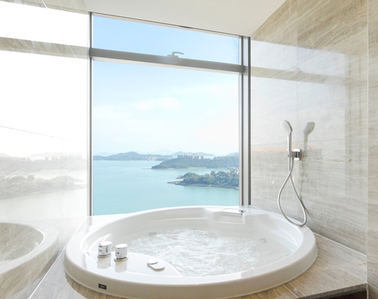 “Poggibonsi意堤”8座15樓B單位主人套房的浴室設(shè)圓形按摩浴缸,面向開揚海景,提升奢華浸浴享受,展現(xiàn)海景豪宅的氣派。