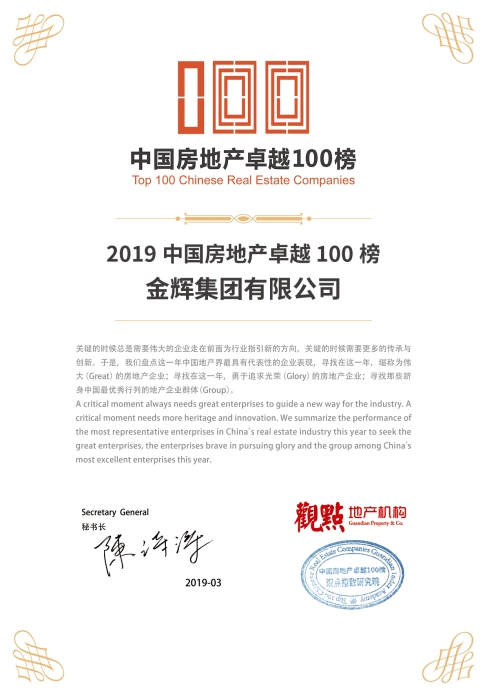 3月19日,觀點機構(gòu)在深圳舉行“2019觀點年度論壇”,金輝集團榮登“2019中國房地產(chǎn)卓越100榜 TOP30”,“2019中國房地產(chǎn)品牌價值卓越榜 TOP20”、“2019中國房地產(chǎn)管理與團隊卓越榜TOP30”。