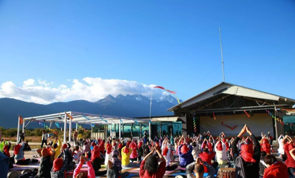 雪山腳下并不總是寧?kù)o。2018年10月,首屆“雪山瑜伽節(jié)”在自在雪山瑜伽生活中心開(kāi)幕。20多位中外名師與數(shù)百位來(lái)自全國(guó)各地的瑜伽老師及愛(ài)好者紛紛涌入金茂谷鎮(zhèn),參加整全瑜伽大會(huì)和山地(戶外)瑜伽大會(huì),在這座世外桃源感受天朗氣清,一葉金秋,遠(yuǎn)看彩云飄飄,長(zhǎng)空蔚藍(lán),雪山屹立。