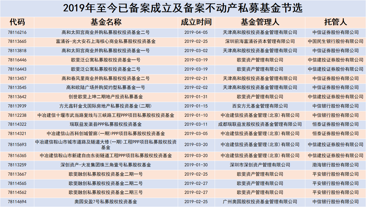 回到不動(dòng)產(chǎn)私募基金方面,截止2019年3月底已經(jīng)備案的私募基金達(dá)到75348只,觀點(diǎn)指數(shù)從中篩選出部分涉及房地產(chǎn)領(lǐng)域投資的私募基金(成立時(shí)間為2019年1月1日至今),可以發(fā)現(xiàn)大體呈現(xiàn)出多點(diǎn)開花的特點(diǎn)。