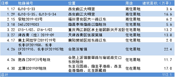 通過公開信息可收集得到,2019年1-4月,正榮地產(chǎn)分別在西安、福州、南昌、重慶、天津及襄陽六個地區(qū)獲得了新的土地儲備??梢姡窘谥饕獓@核心和熱點二線城市進行布局和補充土地儲備。