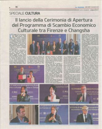 作為世界文娛之都,長沙在國際文化交流、世界經(jīng)貿(mào)合作中取得不凡成績。盛典前期,九龍倉中國置業(yè)助理董事兼總經(jīng)理何蔡寧玲女士率長沙IFS代表遠(yuǎn)赴意大利佛羅倫薩,展開城市探訪考察活動,舉行“長沙和佛羅倫薩雙城經(jīng)濟(jì)文化深入交流項目啟動儀式”,并向佛羅倫薩友人發(fā)出一周年盛典邀請,受到長沙市政府、佛羅倫薩市政府、中國駐佛羅倫薩總領(lǐng)事館的全力支持,同時也獲得了多家當(dāng)?shù)孛襟w的廣泛報道,包括意大利最古老的報紙之一《民族報》(La Nazione),綜合性中文報紙《歐洲華人報》,意大利最著名的全國性日報《晚郵報》等,均大篇幅報道此次雙城交流活動。