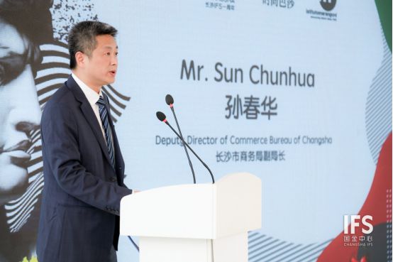 (圖:長沙市商務(wù)局副局長孫春華在高峰論壇致辭)
