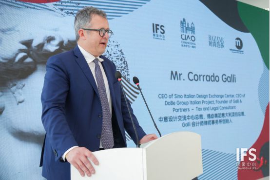 (圖:中意設(shè)計交流中心CEO Corrado Galli先生在高峰論壇致辭)