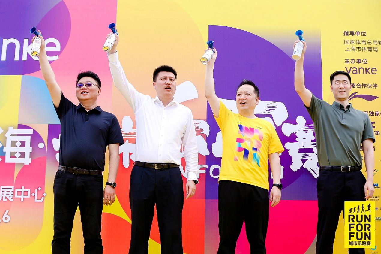 6月6日,來自金融、汽車、建筑、科技,媒體、服務等領域的170家企事業(yè)單位,約5500名參賽者在國家會展中心集結,用奔跑的方式擁抱陽光和健康,共同為祖國母親慶生。上海市體育局副局長羅文樺、上海市體育局群體處處長桂勁松、上海樂跑大使——奧運冠軍王勵勤,以及萬科集團高級副總裁、萬科上海區(qū)域本部首席執(zhí)行官張海為2019上海城市樂跑賽發(fā)令。
